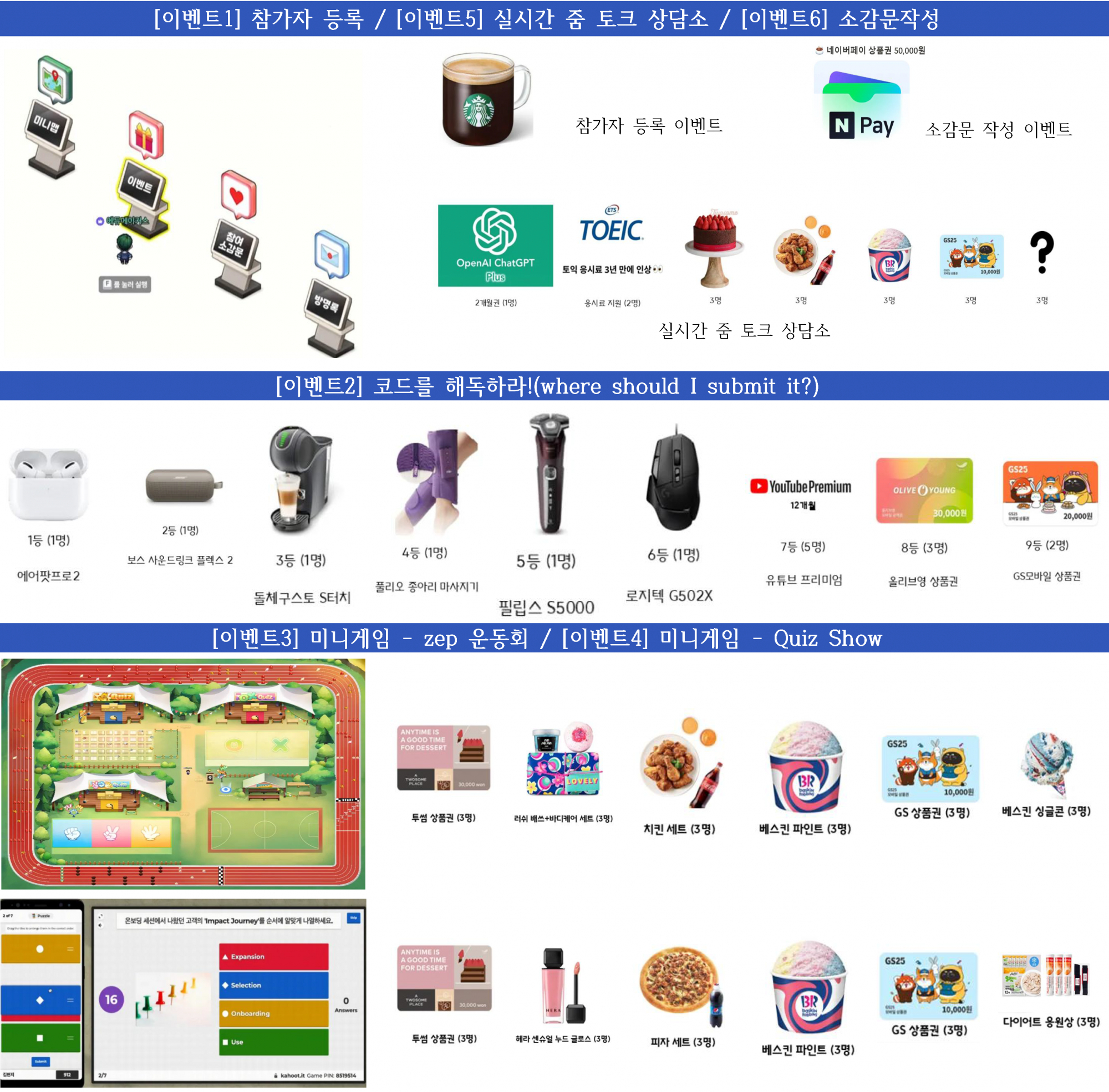 이벤트마다 다양한 상품이 준비되어 있으니 많은 관심과 참여 바랍니다.