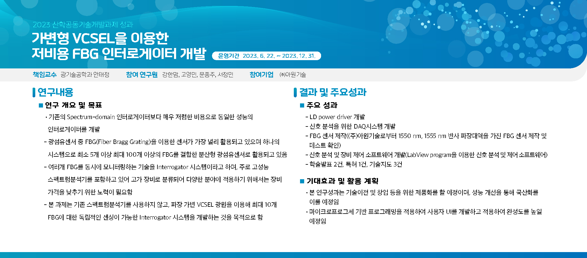 [산학공동기술개발과제] 가변형 VCSEL을 이용한 저비용 FGB 인터로게이터 개발
