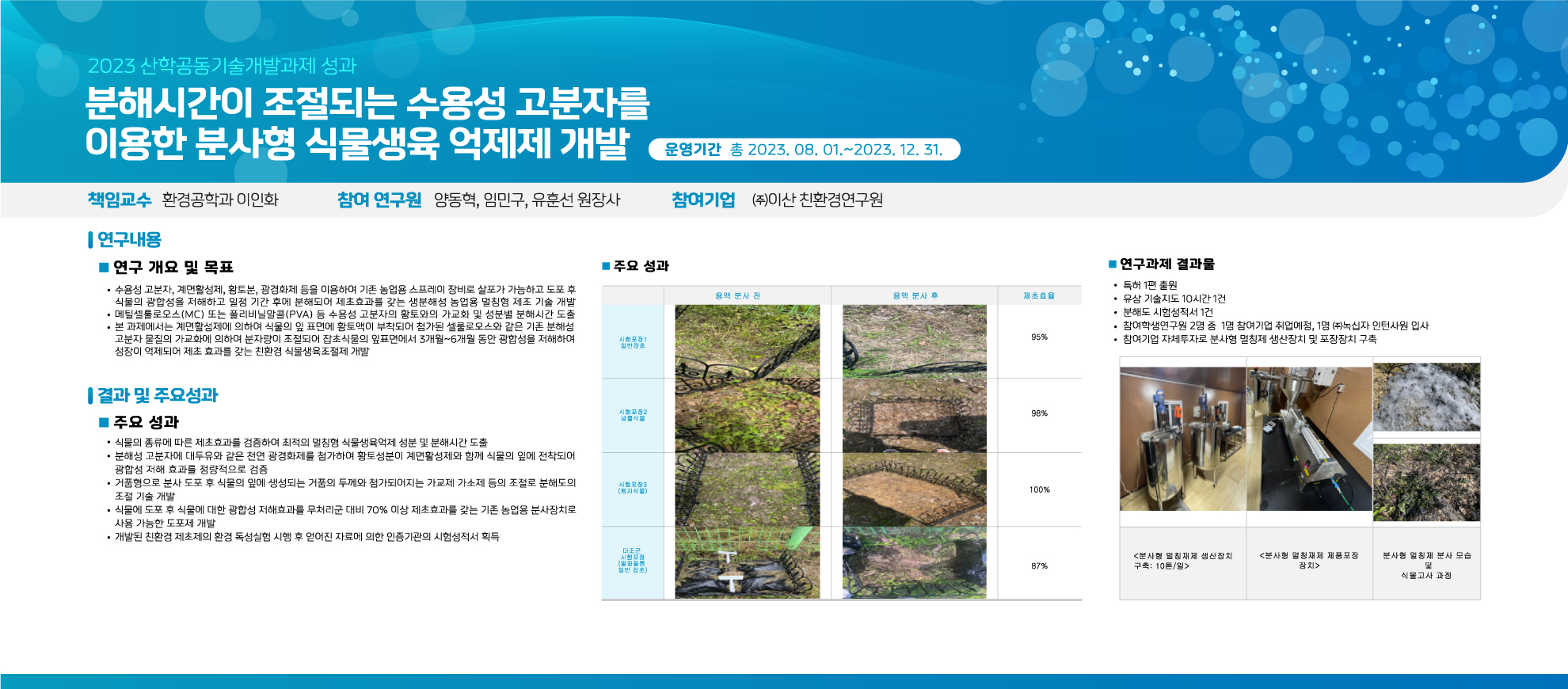 [산학공동기술개발과제] 분해시간이 조절되는 수용성 고분자를 이용한 분사형 식물생육 억제제 개발